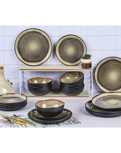 Service Les Essentiels en Grès Iris beige/marron - 18 pièces