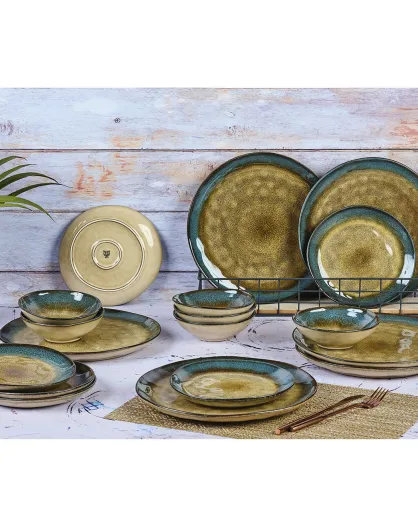 Service Les Essentiels en Grès Island kaki/bleu - 18 pièces
