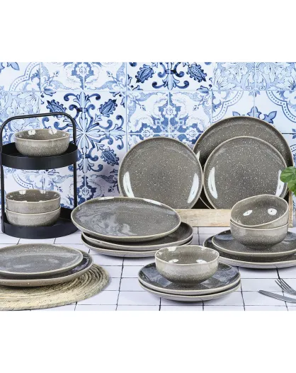 Service Les Essentiels en Grès Stellar gris/anthracite - 18 pièces