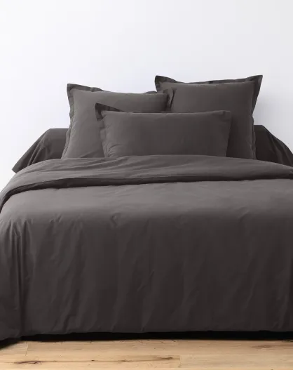 Parure housse de couette unie gris foncé