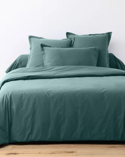 Parure housse de couette unie bleu canard