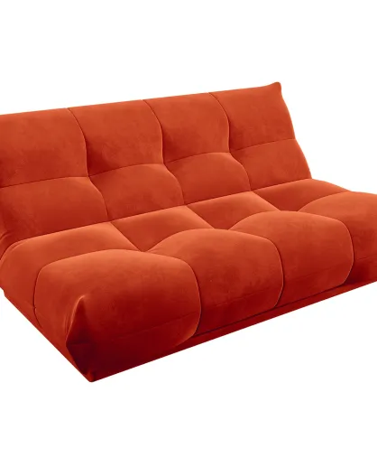 Canapé 3 places cozy velours orange rétro - 180x112x80 cm