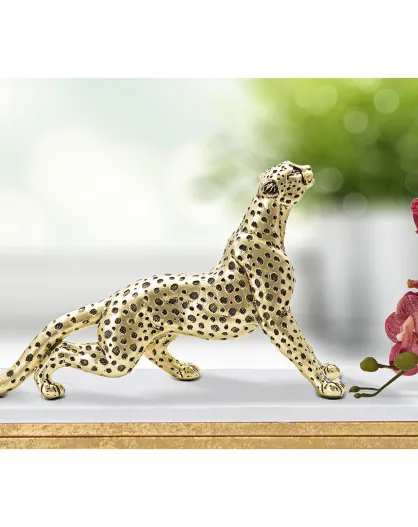 Statuette léopard assis dorée - 33x7.7x19.5 cm