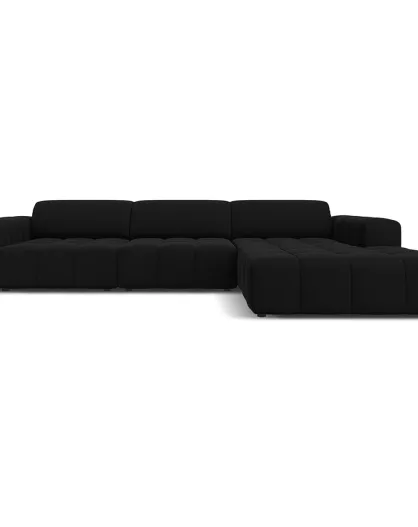 Canapé d'angle Droit Velours Luc 4 Places noir - 284x166x70 cm