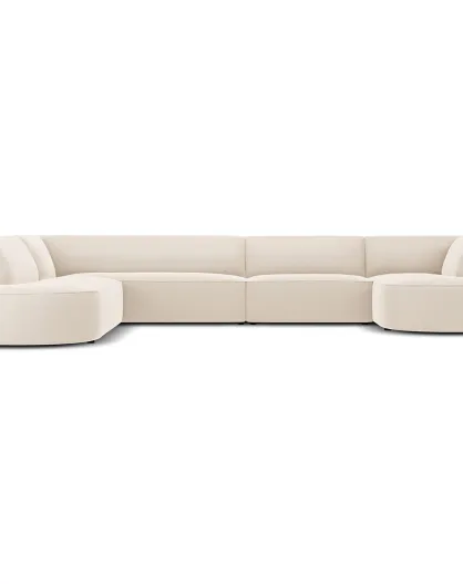 Canapé d'angle Panoramique gauche Velours Charles 7 Places beige - 366x273x69 cm