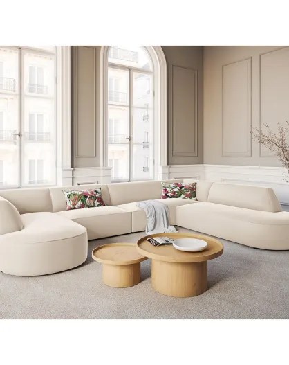 Canapé d'angle Panoramique droit Velours Charles 7 Places beige - 366x273x69 cm