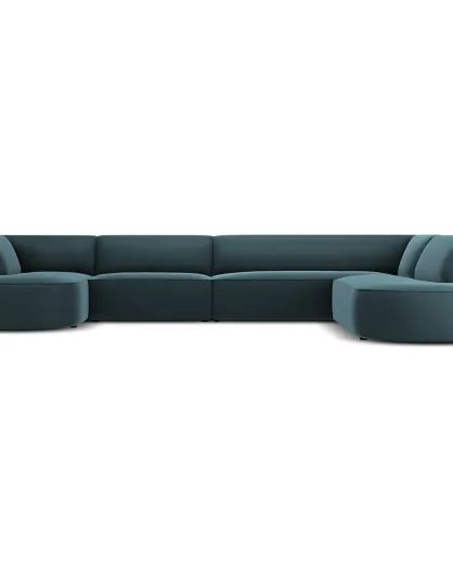 Canapé d'angle Panoramique droit Velours Charles 7 Places bleu - 366x273x69 cm