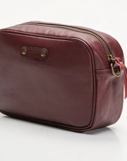 Sac bandoulière en Cuir Giulia bordeaux - 23.5x19.5x3 cm
