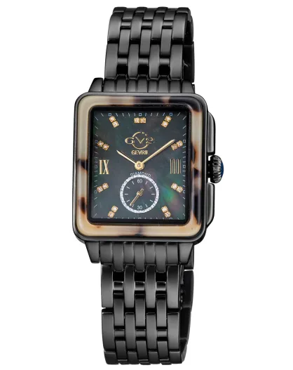 Montre Bari Tortoise Femme Quartz en Acier & Diamants 0,09 ct noire