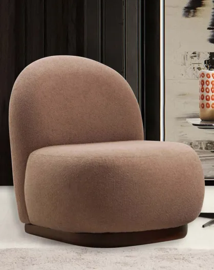 Fauteuil arrondi en tissu bouclette écru