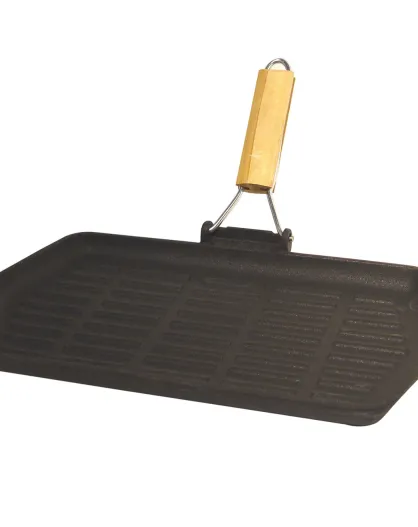 Grill rectangulaire à induction avec fonte manche rétractable noir/bois - 33.5x19.5 cm