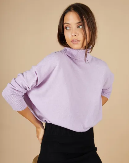 Pull poncho 100% Cachemire Lola col roulé lilas