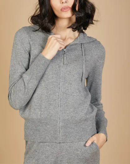 Gilet zippé à capuche en Laine & Cachemire Erica gris chiné foncé