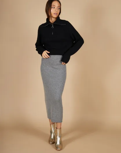 Jupe crayon en Laine & Cachemire Maddy gris chiné foncé