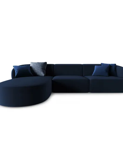 Canapé d'angle Gauche Modulaire Velours Chiara 4 Places bleu roi - 259x155x74 cm