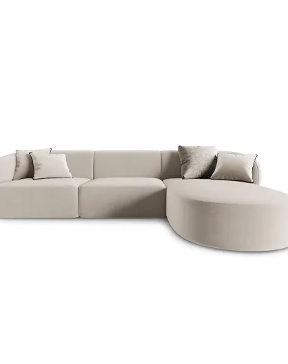 Canapé d'angle Droit Modulaire Velours Chiara 4 Places beige - 259x155x74 cm