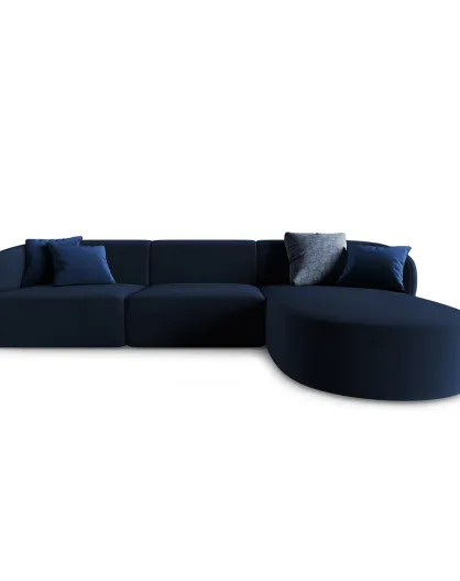 Canapé d'angle Droit Modulaire Velours Chiara 4 Places bleu roi - 259x155x74 cm
