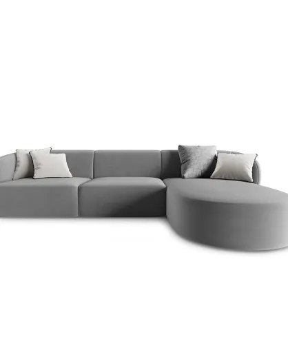 Canapé d'angle Droit Modulaire Velours Chiara 4 Places gris - 259x155x74 cm