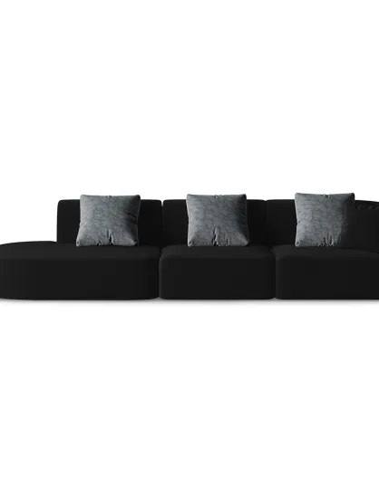 Canapé Modulable Gauche en Velours Chiara 4 Places noir - 302x85x74 cm