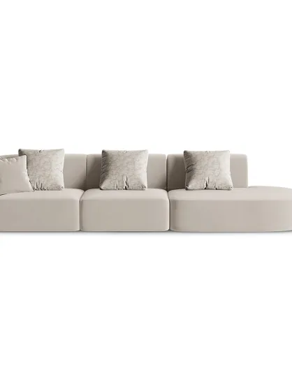 Canapé Modulable Droit en Velours Chiara 4 Places beige - 302x85x74 cm