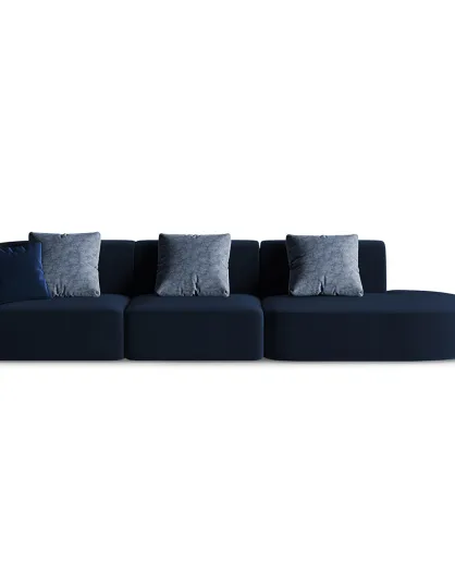 Canapé Modulable Droit en Velours Chiara 4 Places bleu roi - 302x85x74 cm