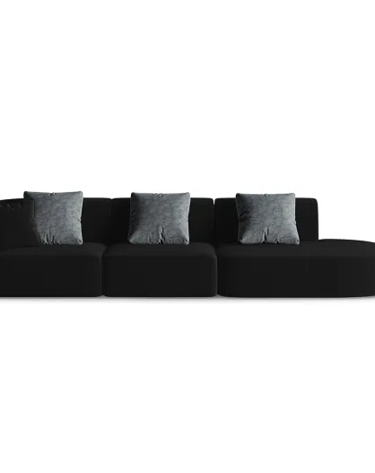Canapé Modulable Droit en Velours Chiara 4 Places noir - 302x85x74 cm