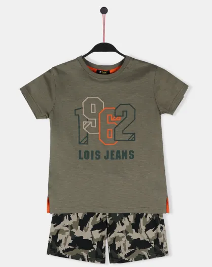 Pyjama T-shirt & Short Louis vert kaki