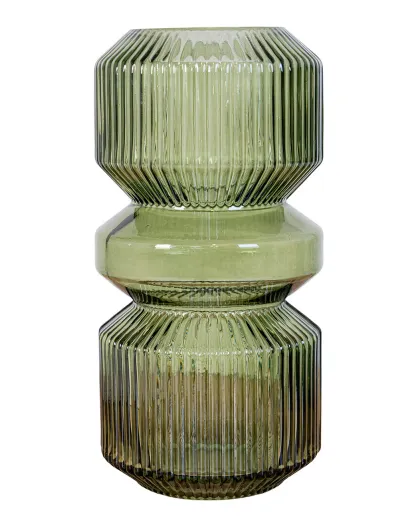 Vase en verre soufflé à la bouche vert foncé - 25x25x30 cm