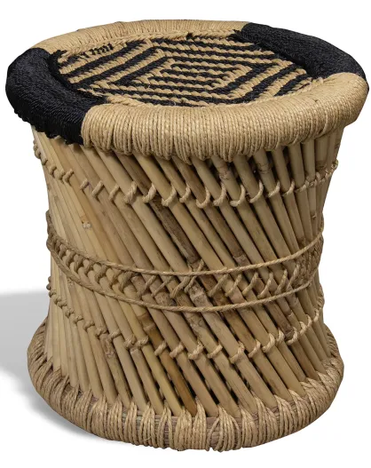 Table d'appoint en bambou tressé main zamzebe naturel/noir - D.39x39 cm