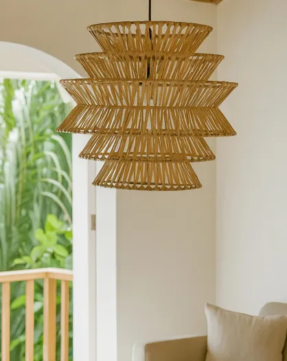 Cache ampoule en bambou tressée à la main ganon naturel - 51x51x46 cm