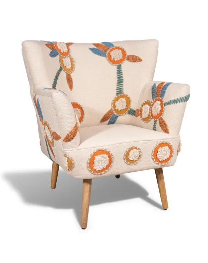 Fauteuil en coton écru brodé à la main maya multicolore - 68x77.5x70cm
