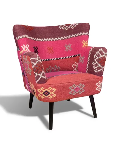 Fauteuil en kilim brodé à la main chaquiras multicolore - 68x77.5x70 cm