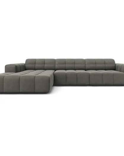 Canapé d'angle Gauche Velours Chicago 4 Places gris clair - 284x166x70 cm