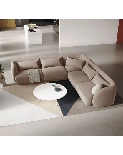 Canapé d'angle Réversible Tulum Velours 5 Places beige - 252x252x74 cm