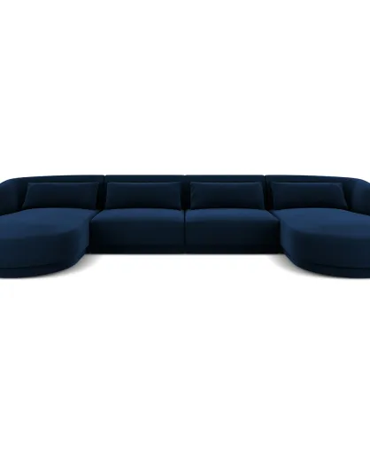 Canapé Panoramique Velours Tulum 5 Places bleu roi - 334x155x74 cm
