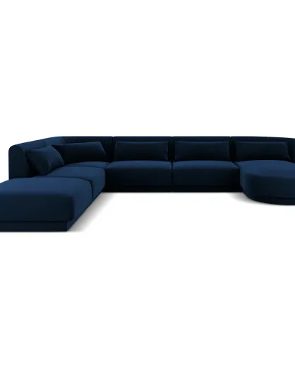Canapé d'angle Panoramique gauche Velours Tulum 6 Places bleu roi - 327x245x74 cm