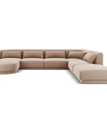 Canapé d'angle Panoramique droit Velours Tulum 6 Places beige - 327x245x74 cm