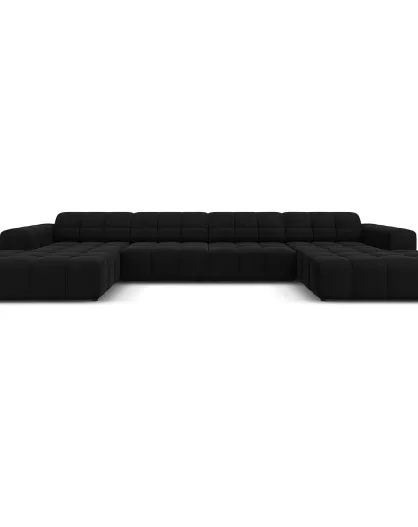 Canapé Panoramique Velours Chicago 6 Places noir - 364x166x70 cm