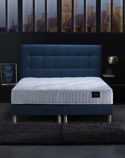 Ensemble Comète Matelas ressorts ensachés + 2 Sommiers + Tête de lit capitonnée bleu marine - 180x200 cm