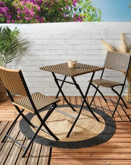 Chaise pliante tressée marron/noir - 45x82x55 cm