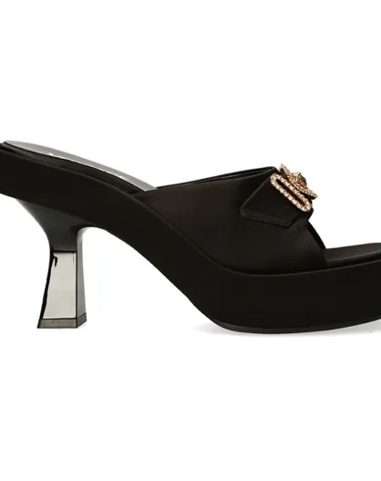 Mules en Satin Medusa Biggie noires - Talon 10 cm