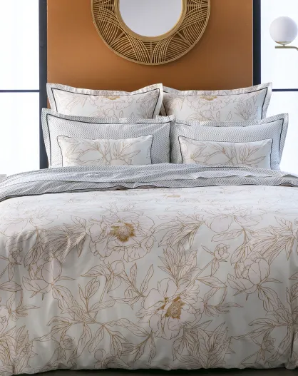 Parure housse de couette 100% Satin de Coton Céline blanc/doré