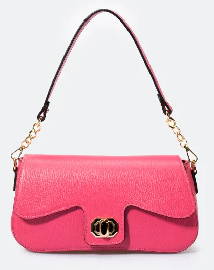 Sac porté épaule en Cuir Alma fuchsia - 27x8x15 cm