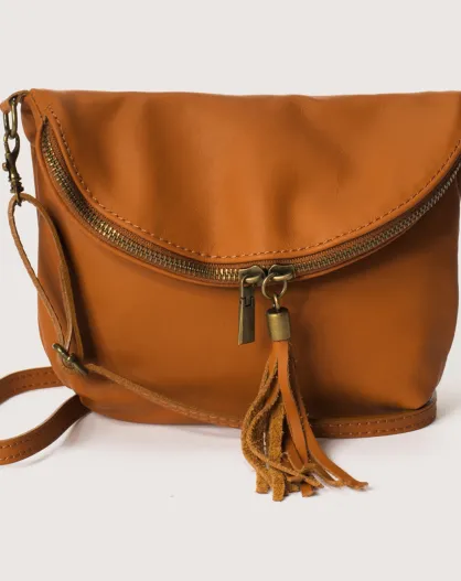 Sac bandoulière en Cuir Agata camel - 24x4x18 cm