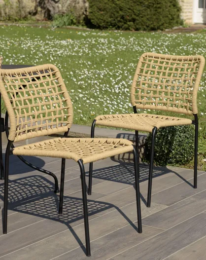 2 Chaises rotin synthétique naturel - 56x62x78 cm