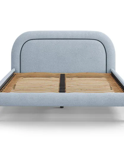 Cadre avec tête de lit Maia velours bouclé bleu clair - 160x200 cm