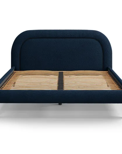 Cadre avec tête de lit Maia velours bouclé bleu foncé - 160x200 cm