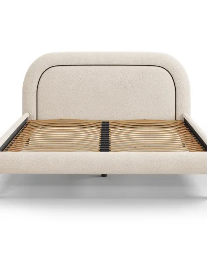 Cadre avec tête de lit Maia velours bouclé beige - 180x200 cm
