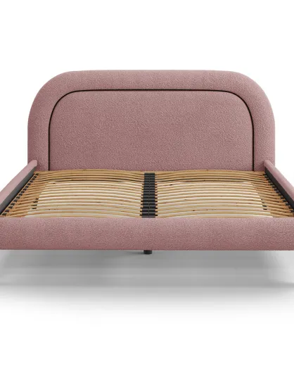 Cadre avec tête de lit Maia velours bouclé rose - 180x200 cm