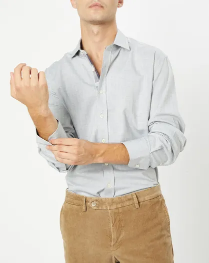 Chemise Slim Fit en Flanelle Chevron gris clair